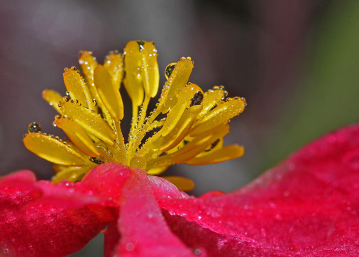 - Striking and abstract, just enough to make out that this is part of a flower. The water drops underline the beauty and bring out a three-dimensionallity.