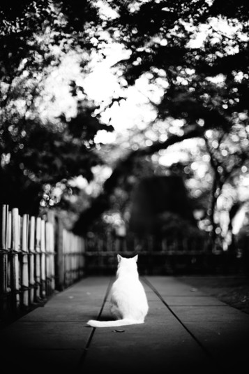 - What an absolutely fabulous image and an instant fave. Strong blacks and whites make for a rich and crisp presentation; the centered framing completely works, along with the receding lines; the beautiful bokeh allowing the subject to stand out; and the one flipped back ear of the cat, half-listening to the photographer behind him ... all wonderful. A truly standout image. Congrats! ~ illona