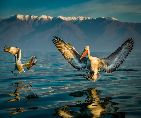 - Glorious light and backdrop plus great timing as these Pelicans touch down.