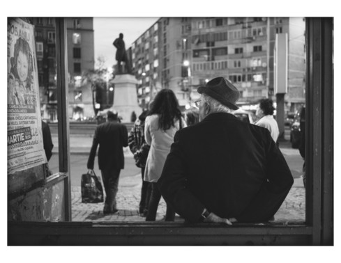 - Sometimes you recognize an image as being great straight away, but not be able to put your finger on exactly why without deeper study. There is something wonderful and yet fragile about the old man whose back is toward us. How he holds onto the rail with his hands behind his back is a subtle clue to his fragility, but it also pins the composition together. The triangle of the hands and arms inverts and repeats with the arms and head, and similar triangles form between the heads of the three people in the street and also between the statue and the face on the poster and that of the old man, etc. This composition really works well. Excellent job!