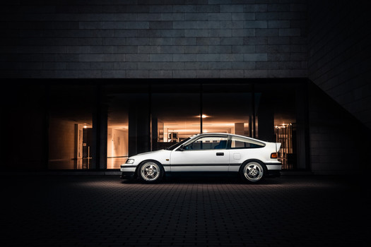 - Its simple and it is a good example of lighting a car in a environment during failing light at night. I like the contrast in colour balance between the light used for the car and the warmer internal lighting of the building. The position is good and it was great to see that the photographer choose to keep that detail and texture in above the car itself.