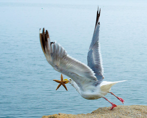 - I was in Maine walking out to a lighthouse and came across these seagulls eating fish. When this guy picked up the starfish I was intrigued. I love starfish and enjoy photographing them but never at the end of the food chain. Nature always surprises me and just happened to be at the right place at the right time. I am a self taught amateur photographer working my way into a professional fine art photographer. I used a Nikon D600. I used lightroom to adjust the color. Thank You Susan Boyd