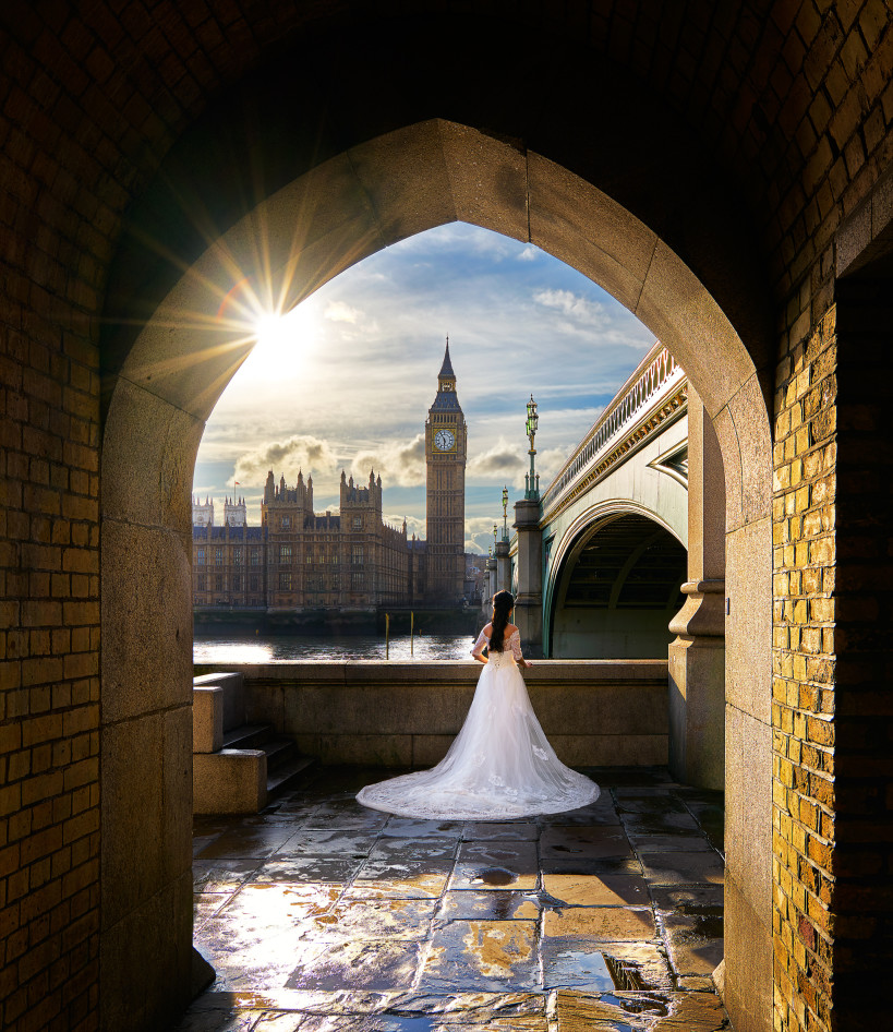 - Thank you for choosing my photo! This photo was captured in London and it was not staged. This bride was actually there with the groom and their photography team. I was able to catch a photo without them, to create a story for this photo. The photo was taken with a Sony A7RII, Sony Zeiss 16-35 f/4. To see more of my work, you are welcome to visit my website!