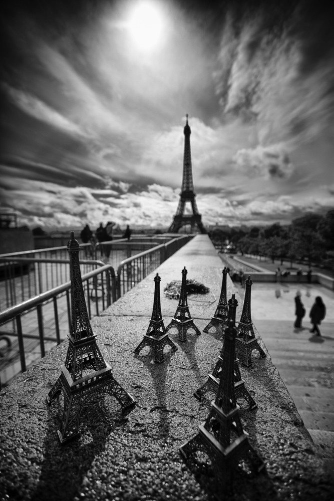 - Thanks for the recognition for the shot. Here, I'd spent the best part of a day trying to get a novel view of the Eiffel Tower (harder than it sounds) when I chanced upon a souvenir vendor on a staircase and loved the haphazard positioning of his wares for a classic repeating composition. I used F2.8 for shallow depth of field to isolate the foreground and under-exposed slightly to optimise a lifeless sky. Black and white is my preferred choice for timeless street shots. Canon EOS 5D MK III, 16mm, F2.8, 1/6400S