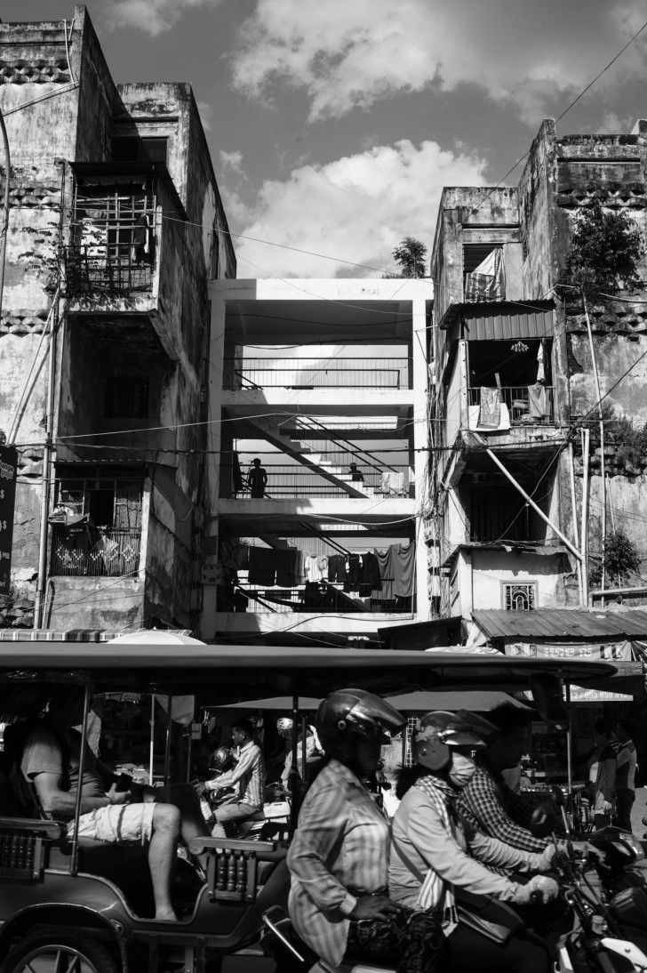- On the first glance, this image can be read as two images. It’s the moment in a movie where they cut from one scene to another to show what two sets of characters are doing at the same time – except that it’s all put together in one shot. This piques the viewer’s curiosity and encourages them to go beyond seeing this as a normal street scene and imagine a story. Great eye to notice and line the roofs of the buildings with those of the vehicles. Well done!