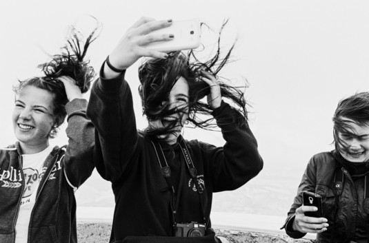 - I love the spontaneity of this. Three beautiful girls taking selfies on a windy day. Very natural expressions. A moment captured without intruding.
