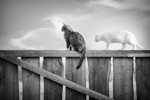 - This is such a unique and very cinematic image. The simplicity of the elements -- wood fence, sky and cats -- make this image stand out. Truly wonderful. ~ illona