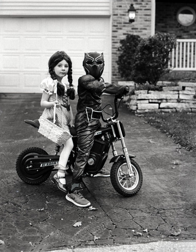 - Thank you so much! I am thrilled about this! My name is Ellen Goodman. This is a photo of my daughter and her friend shot last Halloween, just before trick or treating in St. Louis, MO, USA. My daughter (dressed as Dorothy from "The Wizard of Oz") and I were getting ready to head to Grandmas for some early trick or treating and photos when my daughters friend pulled up on his motorcycle, dressed in this dark, ominous looking costume, "Dark Panther"; a stark contrast from Dorothy. A serendipitous moment that turned into one of my all time favorite photos. Shot on a Pentax 67ii on Ilford HP5+. Thank you once again, so much, and congrats to all, wonderful work in here!