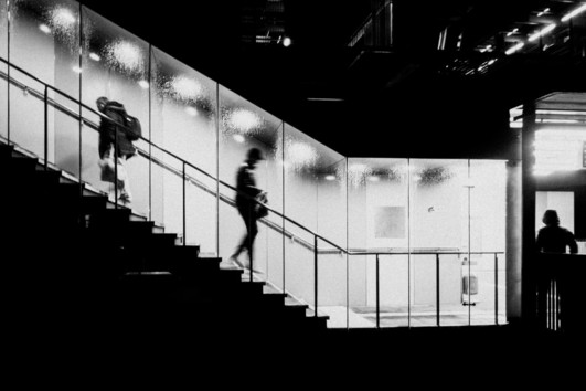 - My name is Stefan Scherf and I'm a photographer from Germany. What you see is the stairway to a station of the Wuppertaler Schwebebahn, the famous suspension railway in Wuppertal. This evening it was raining cats and dogs and the inside is seen from the outside. I took the photo with an Olympus OM-D E-M5 and 17mm lens at ISO800. Thank you very much for Mark of Excellence and congratulations to the winner.