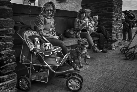 - In this photograph the babies have been replaced with dogs, not just in the baby trolley but - we notice after a little while - for everybody.