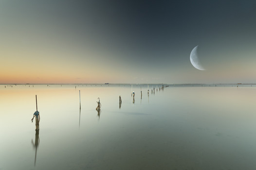 - The photo was taken at the Natural Park of "Delta del Ebro" (Tarragona-Spain). It is a double exposition taken from the camera. The moon was taken with a Canon 6D and a Canon 100-400 L F4.5-5.6 lens at 400 mm, whereas the rest of the image it is a long exposure (4 min) taken with the Canon 17-40 L f4 at 17 mm using a 12 stops Neutral Density Filter and a 3 stops Reverse Graduated filter.