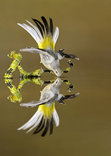- There are so many things that are 'right' about this image that it's hard to know where to start. This wagtail is a great subject due to its graceful proportions and splash of yellow accenting its otherwise monochrome plumage. Photographing this bird exhibiting interesting behaviour in a dynamic and appealing pose is an achievement in itself. Capturing this moment with perfect lighting and perch against a clean, colour-complimentary backdrop is a further accomplishment. Covering up the bottom half of this image shows what a great portrait shot this could have been even without the reflection. The crowning glory, though, is to have captured all of this with such a perfect reflection. Even so, poor framing could still have detracted from this image, but that element is spot-on as well, with the bird-and-reflection combo having just the right size and position in the frame. As a final note, since this may not be appreciated by non bird photographers: for a variety of reasons, photographing small bird species such as this one is hugely more difficult than photographing larger birds. Make no mistake: this is expert bird photography!