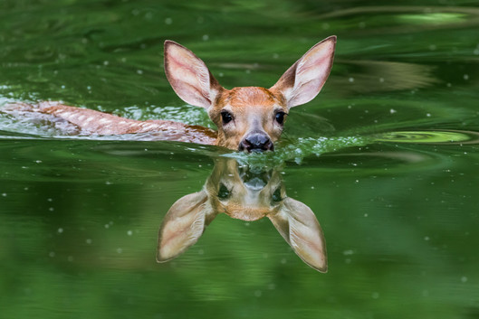 - This photo was captured from my hobbie kayak on East Fork Lake in Batavia Ohio using a Canon 7dmk2/100-400mm. I was waiting for the beaver to start thier daily building when I heard a spash and saw this little deer swimming right at me. I managed to snap a few shots before herding the little guy over to the bank and back into the woods. The color of the water from the alge and the color of the deer where truly a great wildeness experience.