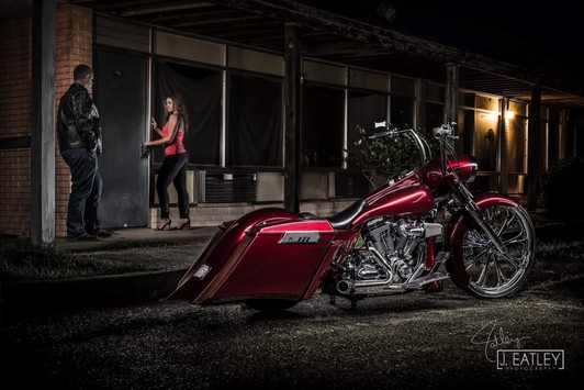 - My name is Jeffrey Eatley from Lafayette,Louisiana. This image was created for the owner of the bike and his wife. It is a combination of lightpainting the bike with many images combined and they people were lit with two studio lights. Then using a long shutter to capture ambient Light. Total count was 17 images total. Thank I shotit and Tim Wallace!