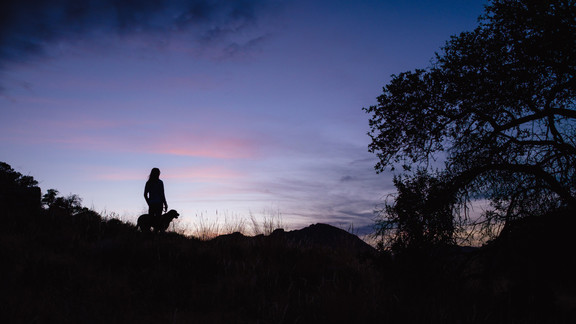 - This is an absolutely wonderful silhouette image. The strong framing with the guardian and dog offset with the tree, give this image a strong balance; the subtle yet rich tones of the sunset, and the fine details of the guardian's hair and the grasses, all make this photo an instant fave. Nicely done! ~ illona