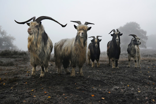 - Susanne Wunn, Sonsbeck/Germany: Thank you very much for this Mark of Excellence. Saw this funny goats with different hairstyles in the „Maasduinen“, a heathlands in the Netherland early in the misty morning / Nikon D800/E
