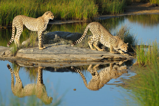 - Nice reflection and mood for these beautiful hunting cheetahs in the early savannah sun light.