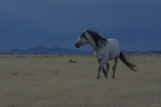 - The soft, dusky tones of this image gives the viewer a sense of calm, and the relaxed gait of this beautiful horse with its flowing mane and windswept tail give us a sense of peace. I would love to see some brighter whites on this image to accentuate the soft light striking the horse's face, shoulder and back, but it is truly a wonderfully memorable image. Nicely done, and congrats! ~ illona