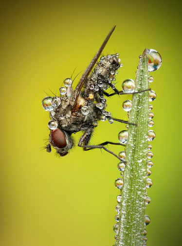 - Just a superb shot of this little fly ! The dew bring power on this picture,the focus is perfect and the composition too ! Perfect job !