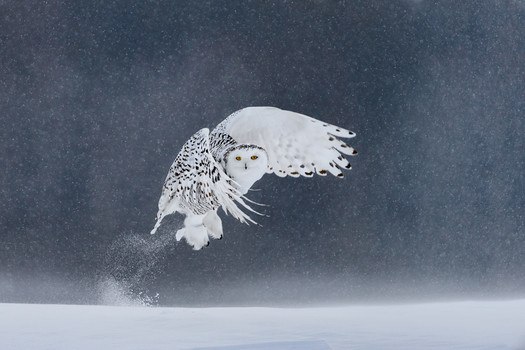 - Owls are always a popular photographic subject and Snowy Owls have a particular attraction due to their striking plumage. To capture the most natural portrait of any animal, the best starting point is their natural habitat. In many cases, though, that's also the most challenging location, due to the lack of control over where, when, or even if your subject will appear. As this photo shows, though, the results can be more than worth the effort. For me, there are two key factors that make this image stand out: the fact that the photographer made the additional effort to go out during a snowfall, and the timing of the shot just after take-off, with a great pose and head angle.
