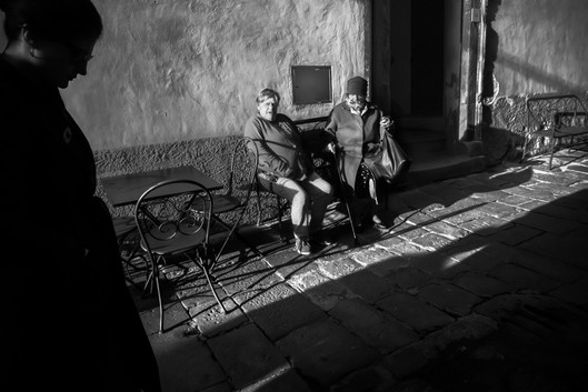 - Breathtaking composition where the eye starts at the black silhouette and follows the shadow to the women talking about her. Well worth the time to consider what it’s about and what is being said.