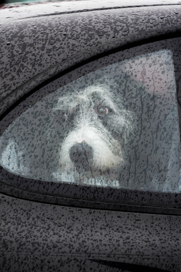 - This is an intriguing image. The almost monotone treatment of this image and the superb texture of the rain drops on the car and window give us a real sense of this wet day, and the dog's sad expression plays into the overall mood. Nicely done. ~ illona