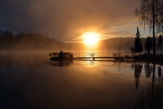 - I call this one "Early birds". It was photographed in spring 2015 in Sweden on my grandparent's property. I like getting out early in the morning to watch the landscape awaken. The seagulls are chanting while flying over the lake as the mist is rising in the golden rays of the sun. It was taken with a Nikon D7100, my first DSLR. It is shot in jpg and no post processing is done to it. It is what it is.