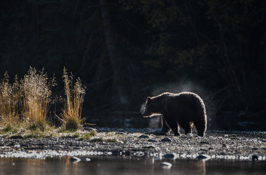 - Thank you very much for all your votes. My name is Angela Poggioni, I am from Italy and live in New York City. This photo was taken last Fall in British Columbia, Canada, when the Grizzly Bears were still out in the rivers looking for salmon. It was a very cold evening just before the sun set behind the surrounding mountains when this Grizzly appeared in the distance. It was lucky that he came along just at the right time allowing me to take the photo I envisioned. Nikon D750 with Nikon 200-500mm f/5.6 at 1/500sec, ISO 1200