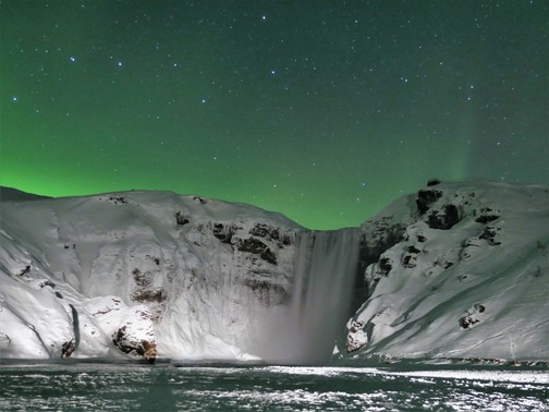 - I am so happy to get even two Marks of Excellence in this round. Thank you so much for your votes! I took this picture at Skorgafoss, Iceland. It was a very cold night and the nothern lights right behind the waterfall were just perfect.