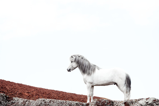 - This is such a fabulously simple yet compelling image. In spite of the stark sky, this small white pony stands out in the landscape due to the red slope and the rock ledge. Nicely seen and captured. ~ illona