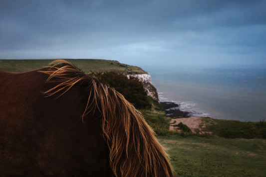 - What an absolutely incredible and unique image! An instant favorite, for sure. The tones and colours are simply brilliant from the stunning blues and turquoises of the sky, and the deep reds and brass highlights against the green hills. The fact that we don't see the entire horse doesn't matter as we can imagine standing next to this grazing animal and smelling the salt in the air lifting off the ocean. Beautiful job and a truly stellar image. Congrats! ~ illona