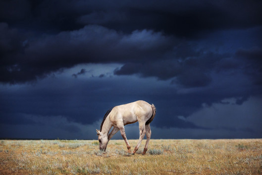 - The colours and tones of this image are purely fabulous! Under this stormy sky we can sense the wind blowing along this plain and feel the foal bracing against it as she grazes. The framing might be stronger if there was more room to the left versus the centeredness of this image, but it is a lovely scene. Nicely done. ~ illona