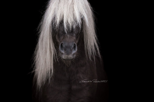- Oh my, I love this low-key image SO much. The subtle tones, the variety of textures from the pony's mane to his soft muzzle and whiskers ... and the fact that we can't see his eyes for his long forelock is almost comical. An instant fave and a fabulous image. Well done, and thanks for sharing! ~ illona
