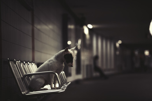 - I can't say enough about this image and how incredible it is. The shallow depth of field and leading line/curve, the strong contrast, and the black-and-white conversion all add to the great atmosphere of this image of a patiently waiting bull terrier. Her lowered head echoes the relaxed pose of the person sitting in the background. Beautifully done and an immediate favorite. ~ illona