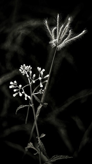 - Ian Gledhill, Northeast Thailand.Sony a 6000 at 1/200 sec; f5.6 iso 400 135mm. Stunning sunlight on these wild Thai flowers found in grassy undergrowth made an eye-catching B &W nature at it's best capture. Thanks so much for the mark of excellence.