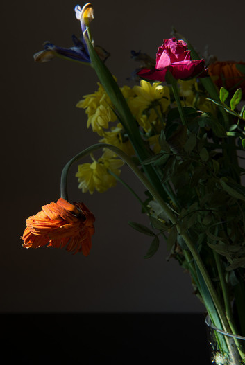 - The unusual angle, of how the bouquet of flowers is arranged and stands out of the vase make this a very special photo. This image is beautifully executed.