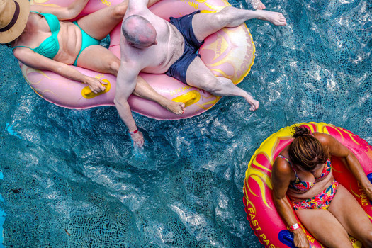 - Hi! First to say that I'm SO HAPPY you liked the photo :) It was taken during a photoshoot for a waterpark in Mallorca. While I was waiting for our models I saw all this people passing below, not only tourist but also local people you meet normally in their offices, supermarkets, the bussy streets in the city. For me this photo represents perfectly the mood of a day off, doesn't matter who you are during the rest of the year. Camera model Canon 6D, lense Tamron 24-70, Palma de Mallorca summer 2018