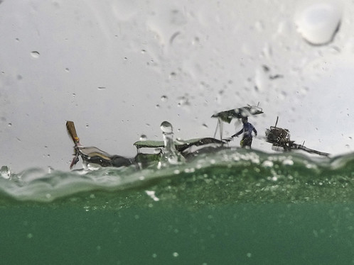 - Like an ant on a wet tree leaf, but then we look closer and see it’s a human in the ocean, captured from half-way below water. Fascinating capture!