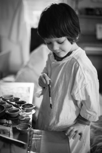 - This young artist at work shows devotion, and gives away a tiny smile in doing so. We don’t need to see colour in this photo, the colourful personality of this individual comes through strongly.