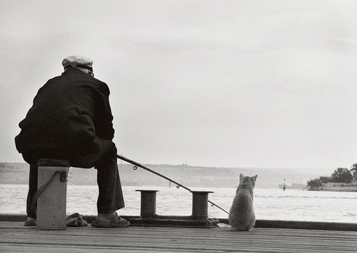 - This is a lovely, story-telling image, and the choice to convert to black-and-white keeps the elements simple so that we can focus on the waiting cat and the fisherman. My only suggestion is that you straighten the image. The distance shoreline and the dock are essentially parallel and having them straightened would keep the overall image cleaner and allow the viewer to be even more engaged with the subjects. ~ illona