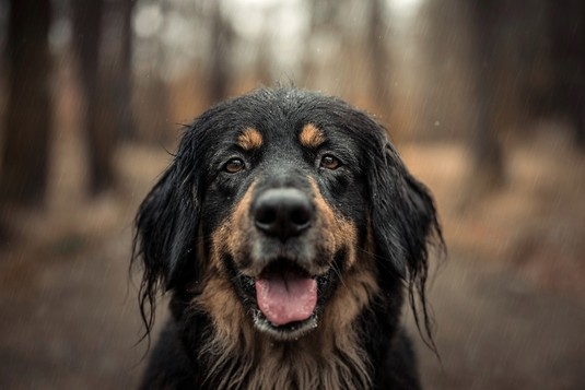 - This is a simple yet compelling image. The centered framing works for this straight stare of this wet dog. The subtle yet rich tones give us a sense of the wet, heavy day, and the details in the wet dog's fur and eyes, draw the viewer's eye in almost immediately. Nicely done! ~ illona