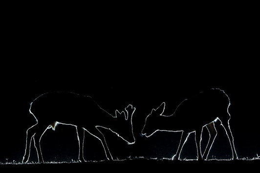 - This is a most original and exceptional photograph shot into a strong source of backlight. The resulting white contours are striking, drawing a complete outline of these two roedeer. The shapes created are individual, graphic, and make a pleasing minimal composition, the male and female contours completing the symmetry. Outstanding work, congratulations you win this round.