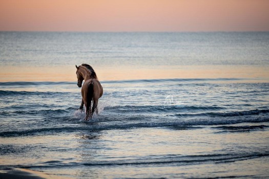 - This is a wonderful image of a horse pawing at the waves ... the contrast in color between the warm tones of the horse and the blues of the water are lovely. Nicely captured! ~ illona