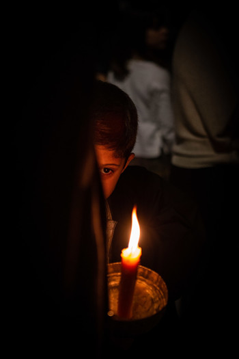 - A truly beautiful capture this is, with showing love and soul. Having one eye covered, this young person shows a little shyness, possibly. The candle light lends a warm feeling to this peacefully situation pictured.