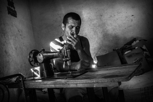 - Feels like a view into a long life of working this sewing machine. It may be so, or not, but the photo makes us feel we get a view into this persons life and reality.