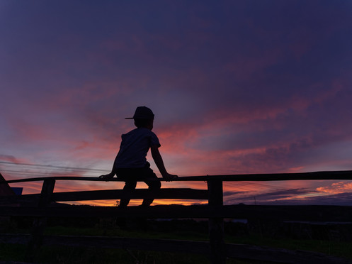 - Seeing many submissions to this Child Photo Competition which show children with smiling faces, this is what makes us appreciate this photo even more. Not only are the colours of the sunset superb, and the boy sitting on the wooden fence .. this image suggests, that the child might be facing into the distance. We can not really tell, since we see the silhouette of the child only, and no details of the face, nor the body. A great photo this is which takes our minds away into the distance.