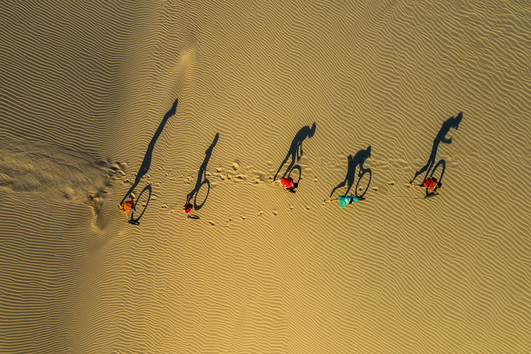 - Magnificent shadows rule this photograph! How shadows of the kids become more dominant than the actual people shown is very well captured in this image. Having a uniform background of sand to this, makes the observer focus on the kids. A wonderful capture this is!