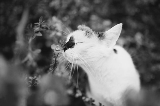 - This is a lovely capture, with wonderfully shallow depth of field, and great focus on the cat and the flower it is sniffing. Beautifully done! ~ illona