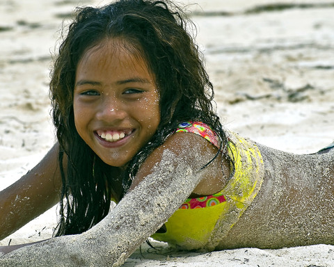 - Growing up can be so much fun, and the photographer of this photo managed well to share this feeling with all of us. The tonality and colours, as well as the girl’s skin covered with sand is lovely, and her smile is priceless!