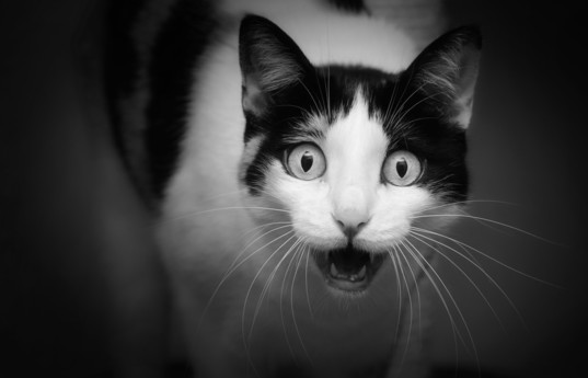 - This is such a fun and comical image. The capture of this cat's expression -- his open mouth and wide eyes -- is priceless. Choosing to present this image in black and white also makes the expression become the key feature. Nicely done! ~ illona